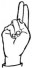 На ћирилици написано КОСТАДИН ГАРАБИНОВИЋ састоји се из 19 слова [?]. Исписано ћириличном једноручном азбуком за глувонеме: